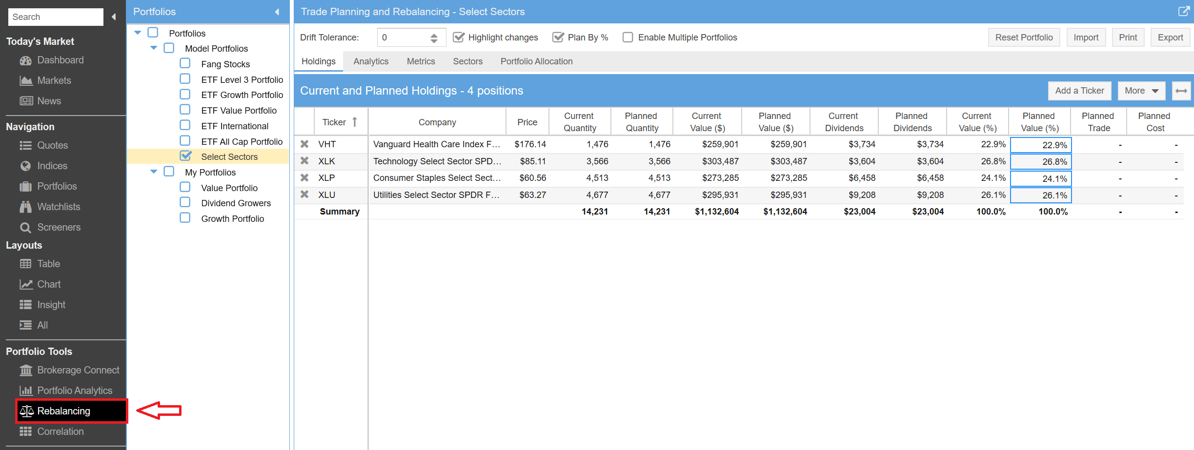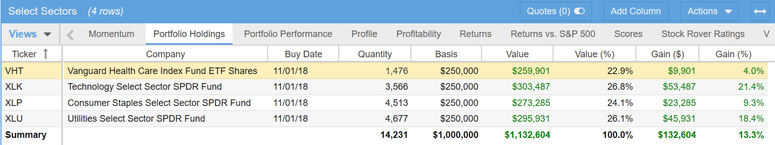 Good morning Howard, thanks for this post which raises a question to me based on what I am trying to achieve. I start with a portfolio made of 4 ETF and cash, each line at 20%. Then I would like to compare two strategies: 1. where I stick & hold my portfolio and see what happens during 5 years (in the past). 2. where I quarterly rebalance evenly (to stick to my initial 20% for each line) also for 5 years. It is possible to do that with Stockrover ? The first strategy is piece of cake, but what about the second with rebalancing ? If feasible, then I could play with the simulation, changing rebalancing frequency, rebalancing thresholds,… I am ready to make some programming if required. Thanks & Best regards Jean-Louis
