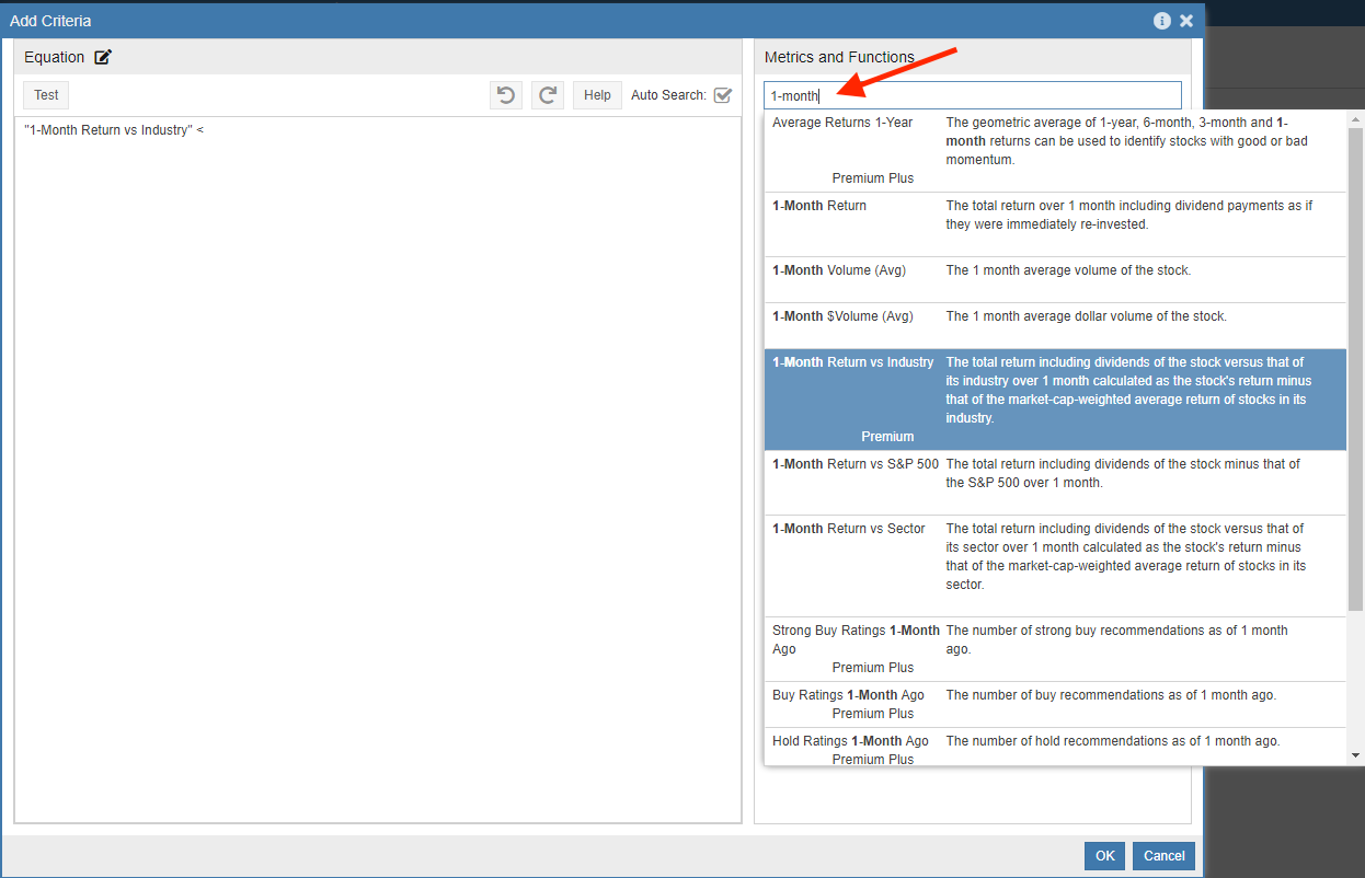 Note: There is a separate guide to help you learn more about using Custom Metrics in Equation Screeners. It is available in PDF and Word format.
