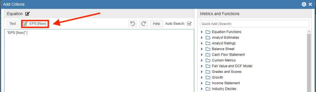 Another option is to turn on Auto Search and then start typing directly into the equation editor and the Search box will populate with the list of dynamic search results.
